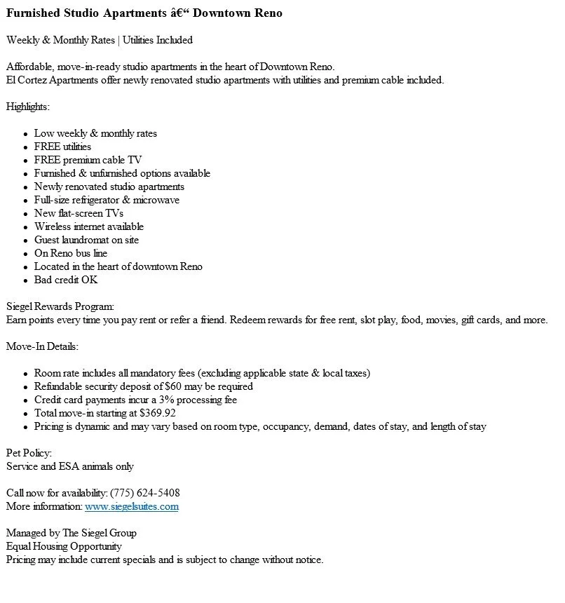 This listing-style copy is designed to convert quickly by front-loading affordability, including utilities, and flexible living options. The structured layout makes key benefits easy to scan, reduces uncertainty with transparent move-in details, and appeals to budget-conscious renters who need fast, low-barrier housing.